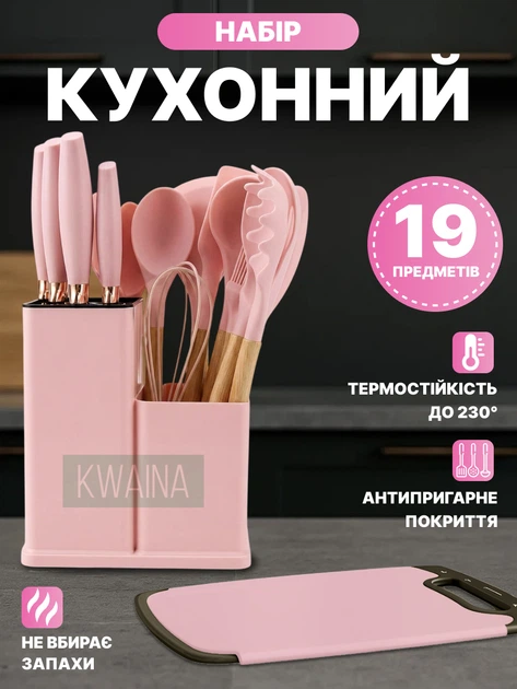 Набір кухонного приладдя 19 предметів з підставкою для зберігання: ножі, лопатки, ножиці з дощечкою та додаткові аксесуари,