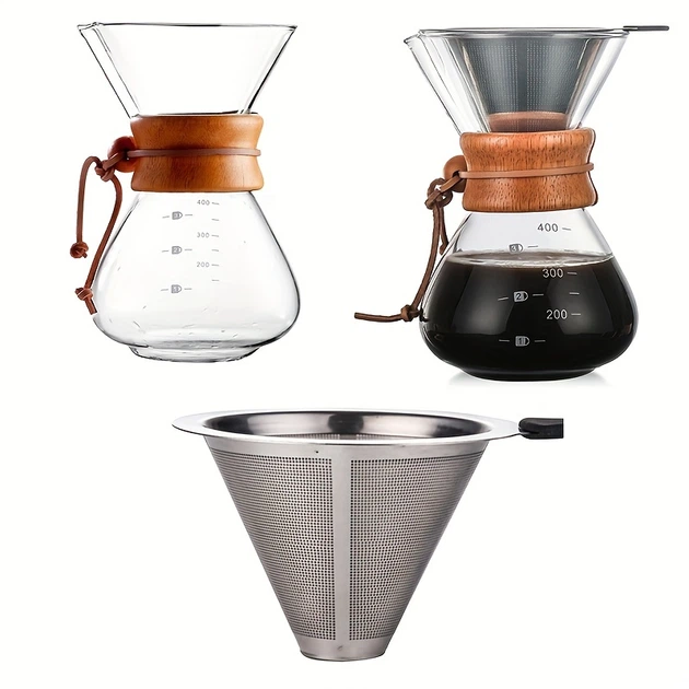 Кемекс скляний пуровер з металевим фільтром 400 мл.