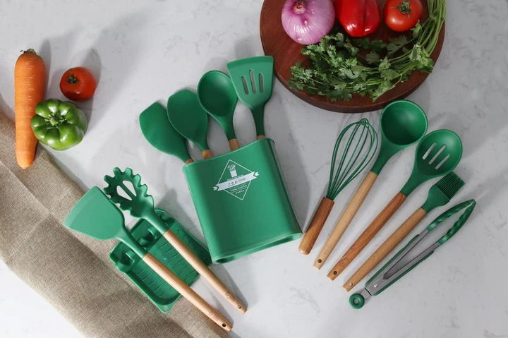 Кухонний набір ZP, 13 предметів, силіконовий, зелений