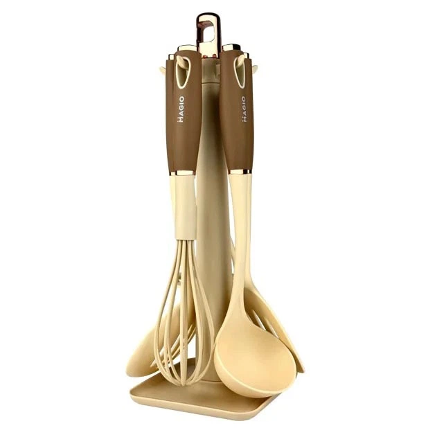 Набір кухонних приладдя з підставкою 11 штук, коричневий(HP27475)(WB)