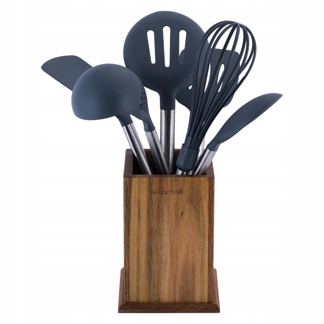 Набір Kamille кухонного приладдя з підставкою 7 шт, нейлонові з ручкою з бамбука