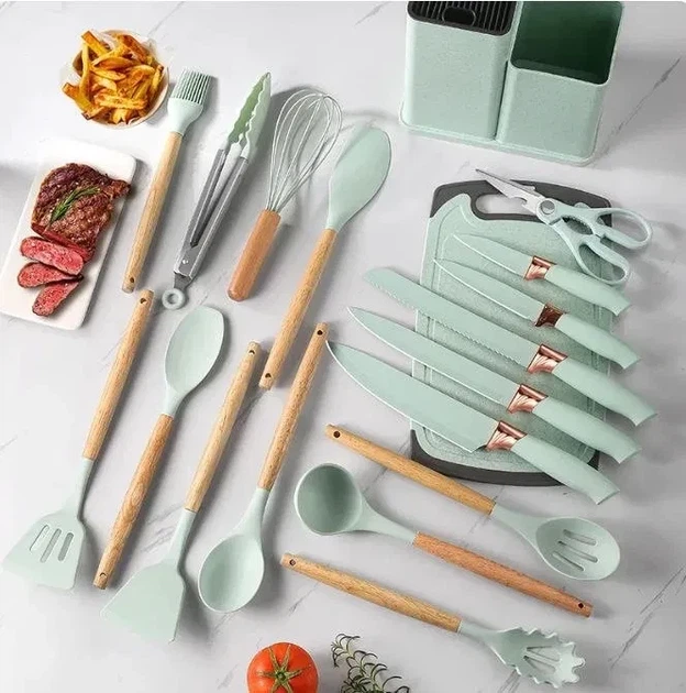 Набір кухонних речей на 19 предметів, аксесуари силіконові, пластикові ZP-107 Бірюзовий