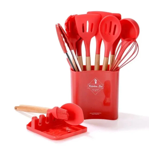 Кухонний набір ZP 12 предметів, Силіконовий, Червоний