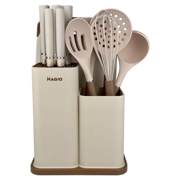 Кухонний набір з нержавіючої сталі та силікону, 12 предметів, бежевий