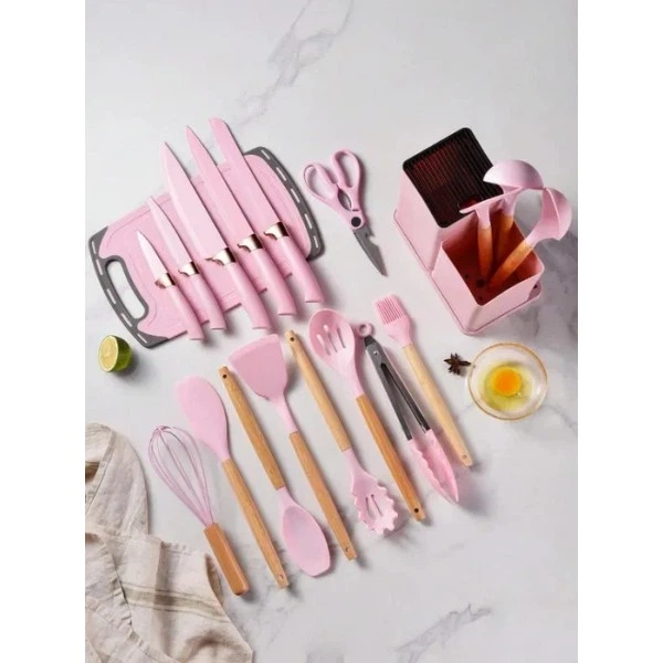 Набір ножів + кухонне приладдя Zepline ZP-107 19 предметів Рожевий