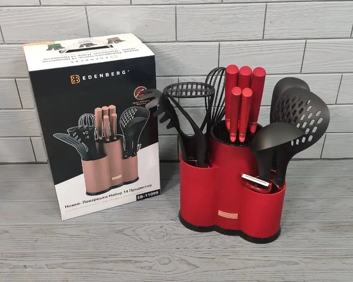 Набір ножів та кухонного приладдя Edenberg EB-11099-Red 14 предметів червоний