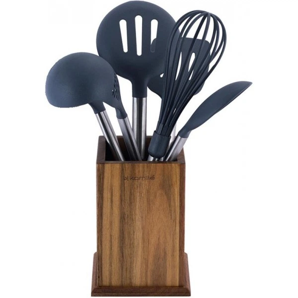Набір кухонного приладдя Kamille Britta 6 предметів на підставці для готування та сервірування з нейлоновими інструментами (