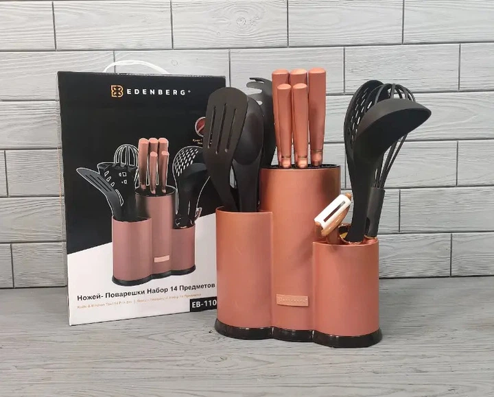 Набір ножів та кухонного приладдя Edenberg EB-11099-Bronze 14 предметів бронзовий