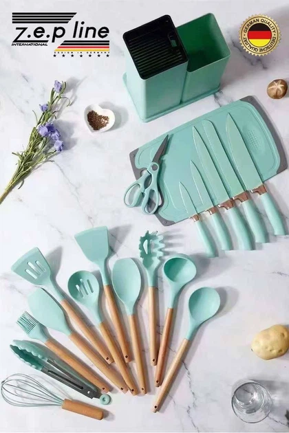 Набір кухонного приладдя + набір ножів Zepline ZP-107 19 предметів Бірюзовий