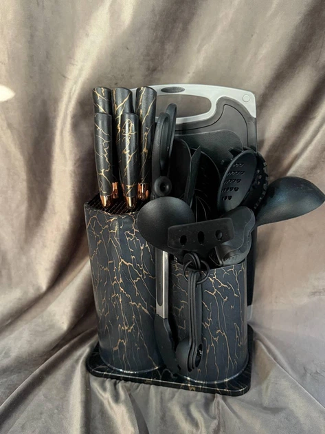 Набір кухонного приладдя TS Kitchen 120-1742 на підставці 25 предметів Чорний