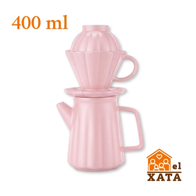 Рожевий керамічний пуровер 400 мл — стильний набір для ручного заварювання кави