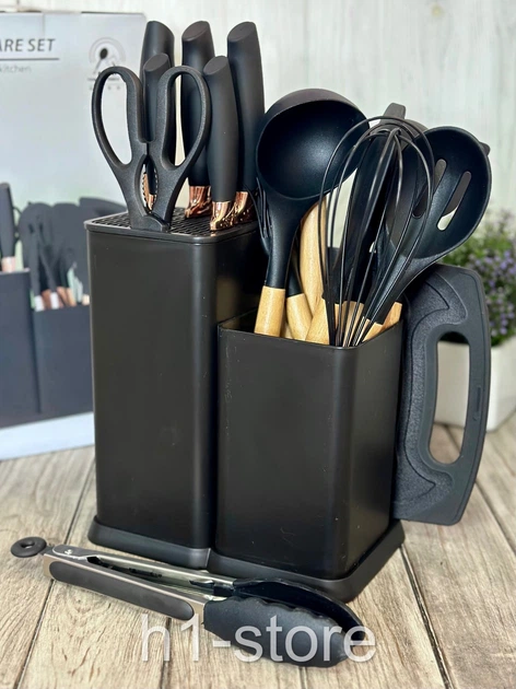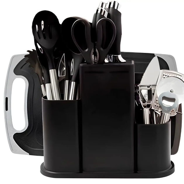 Набір кухонного приладдя Kitchenware Set. Силіконові аксесуари на підставці 20 предметів чорний