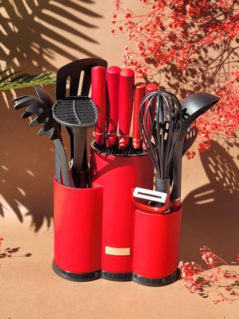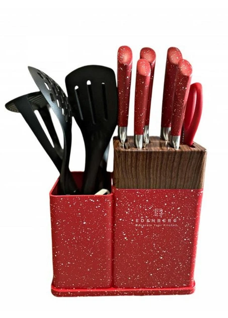 Набір кухонних ножів з кухонними приладдями Edenberg EB-11099 антибактеріальне покриття 14 предметів Червоний (EB-11099)