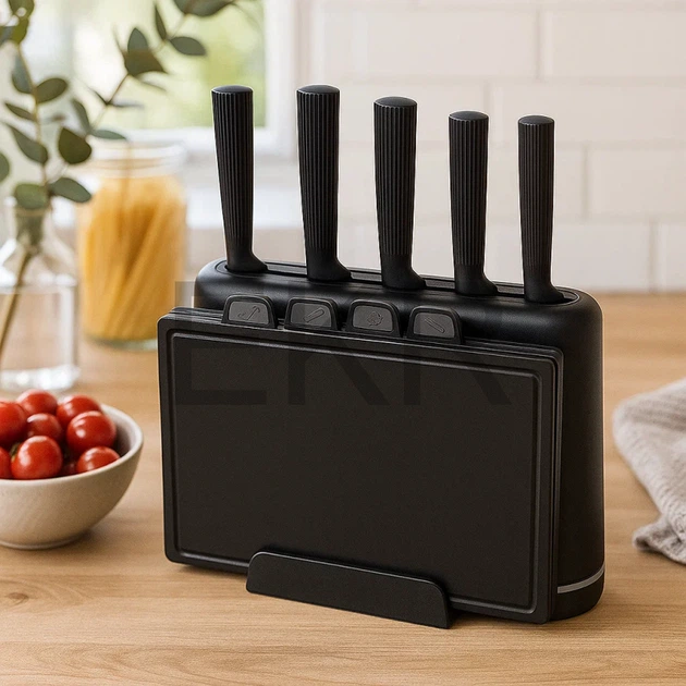 Набір кухонних ножів та приладдя ZepLine ZP-045 на підставці 14 предметів Чорний