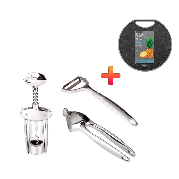 Набір для кухні ZUBEHOR: штопор, овочечистка, прес для часнику Krauff + ПОДАРУНОК: кухонна дошка