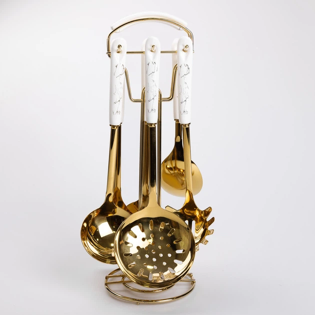Набір кухонного приладдя на підставці 7 предметів Золотистий з білим Yiwu HP-20-7