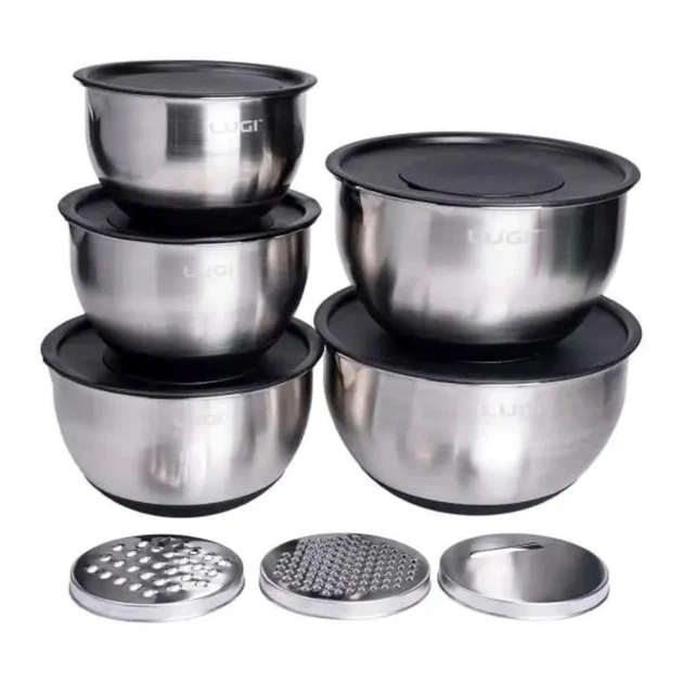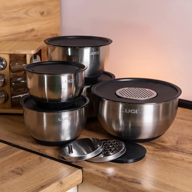 Набір мисок із нержавіючої сталі 5 шт салатниці глибокі миски з кришками та терками 5 л 4 л 2,5 л 2 л 1.5 л