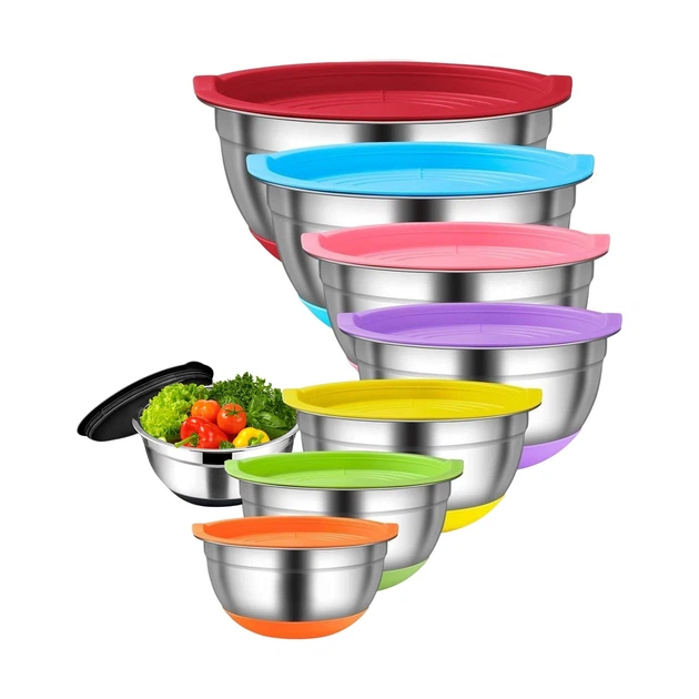 Набір мисок із нержавіючої сталі з силіконовим антиковзким дном Homiqo, 8 шт, 16-30 см, різнокольорові