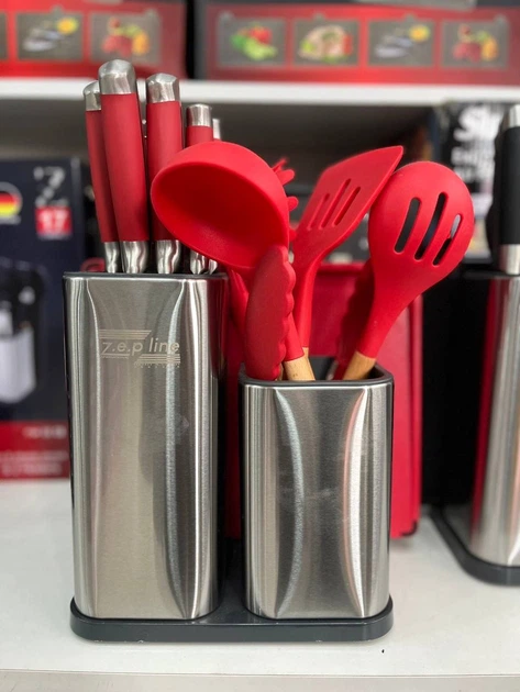 Набір кухонних ножів та приладдя Zepline ZP-047 на підставці (17 предметів) Червоний