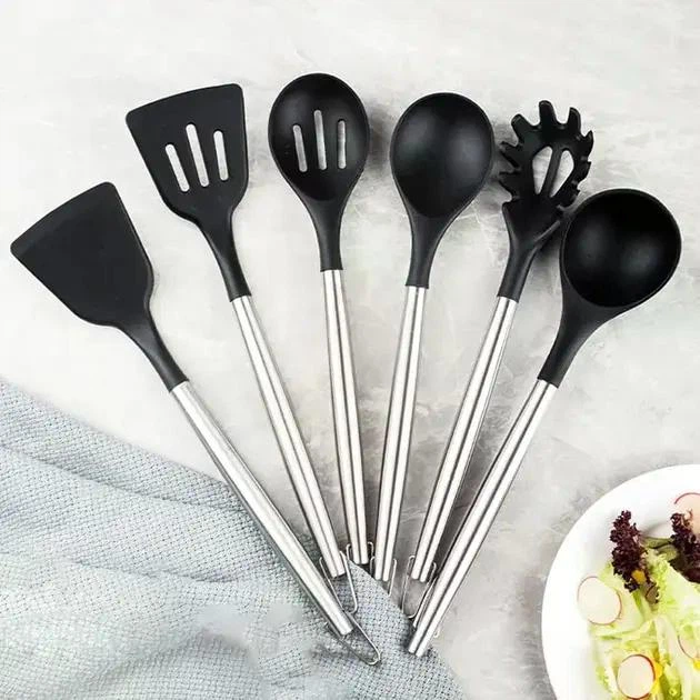Набір ножів чорний та кухонне начиння лопатки для кухні 17 в 1