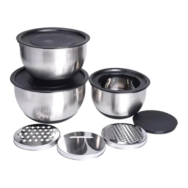 Набір мисок з нержавіючої сталі з кришками та терками для кухні салатники для зберігання їжі (524606)