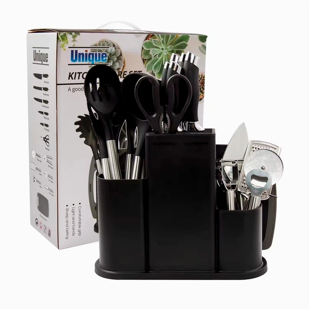 Набір кухонного приладдя 20 предметів чорний нержавіюча сталь силікон для кухні