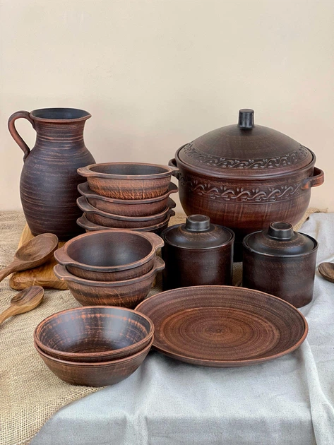 Набір керамічного (глиняного) посуду для Борщу на 6 осіб Гладкий