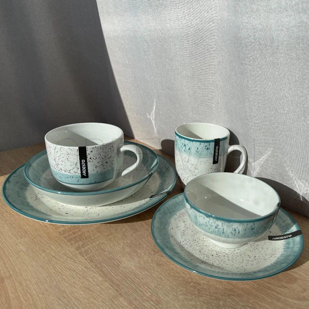 Столовий сервіз Ardesto Siena 12 предметів 2 персони біло-блакитний порцеляна