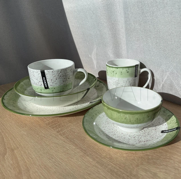 Столовий сервіз Ardesto Siena 12 предметів 2 персони біло-зелений порцеляна