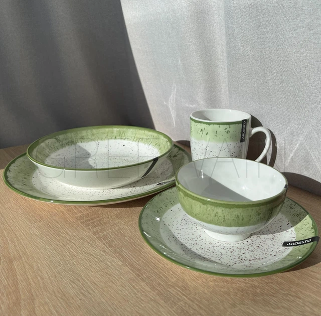 Столовий сервіз Ardesto Siena 15 предметів 3 персони біло-зелений порцеляна