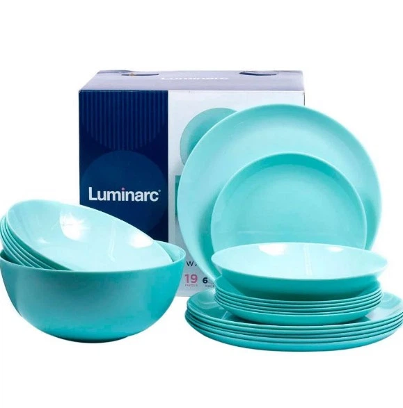 Блакитний столовий сервіз Luminarc Diwali Light Turquoise зі склокераміки 19 предметів (P2947)