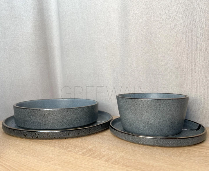 Сервіз столового посуду пастельний сірий 14 предметів 4 персони Ardesto Cremona кам'яна кераміка