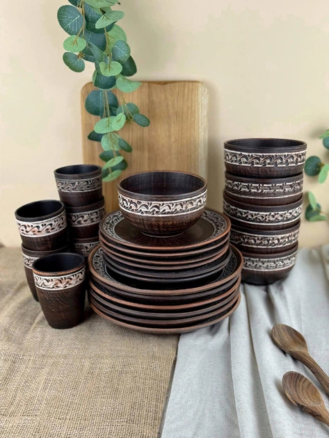 Обідній набір глиняного (керамічного) посуду на 6 осіб Гражда Ангоб