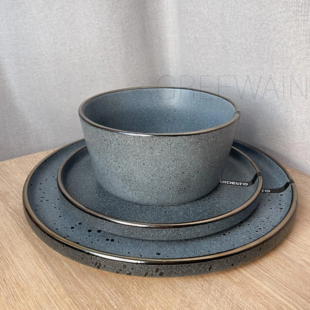 Столивий сервіз посуду 9 предметів на 3 персони Ardesto Fasano світло-сірий матовий кераміка