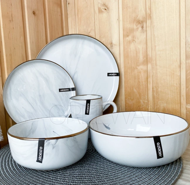 Сервіз столового посуду Ardesto Marmo 15 предметів на 3 персони білий мармур
