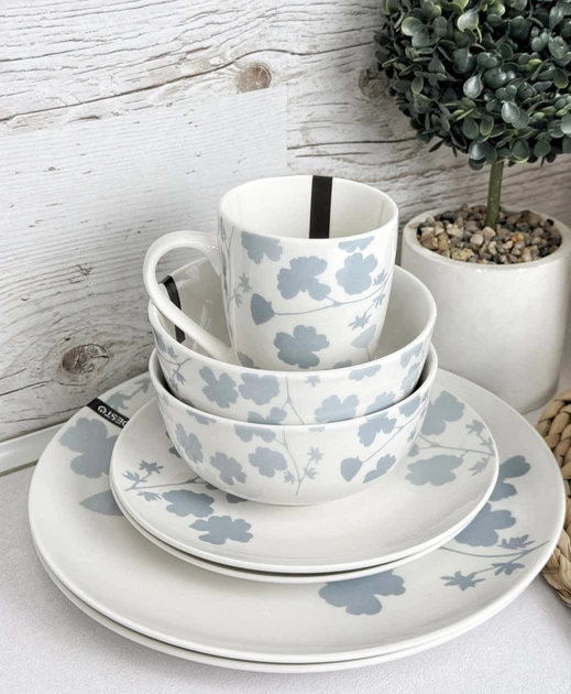 Столовий сервіз тарілок 24 штук керамічних на 6 персон білий квіти