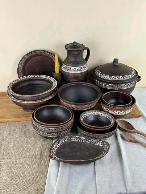 Різдвяний набір керамічного (глиняного) посуду "Дванадцять страв - великий" Ангоб