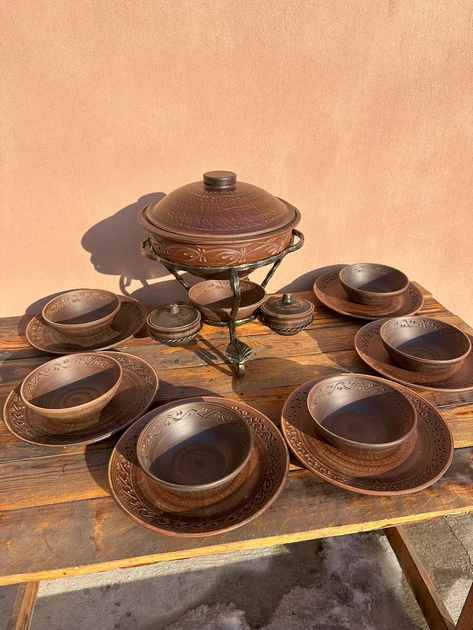 Набір посуду із червоної глини Шашличниця з піалами та салатниками