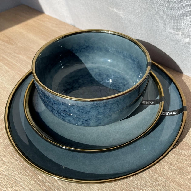Сервіз столового посуду 12 предметів 4 персони ARDESTO Andria синього кольору з золотим кантом кераміка