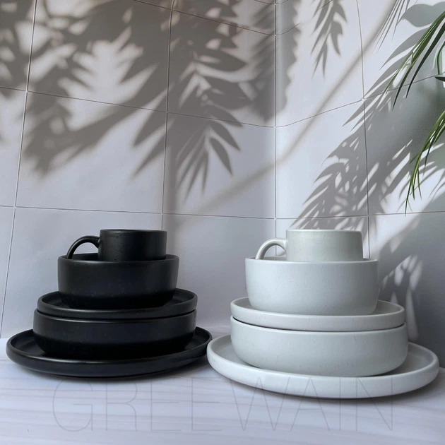Сервіз столового посуду 20 предметів 4 персони Ardesto Trento чорно-білий кам'яна кераміка