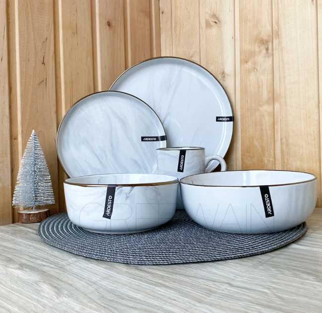 Сервіз столового посуду Ardesto Marmo 20 предметів на 4 персони білий мармур