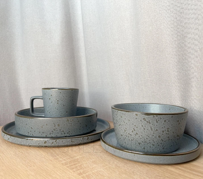 Столивий сервіз посуду 15 предметів на 3 персони Ardesto Fasano темно-сірий матовий кераміка