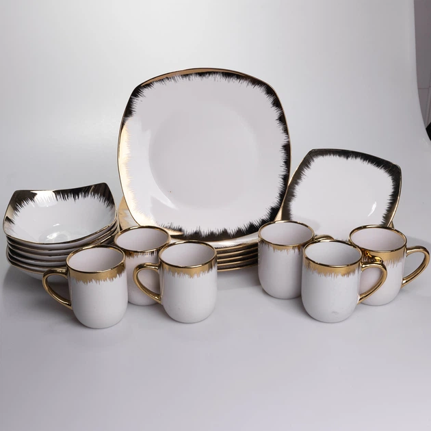 Столовий набір посуду тарілок і чашок 24 предмети на 6 персон «Геометрія» порцеляновий SD-24-1