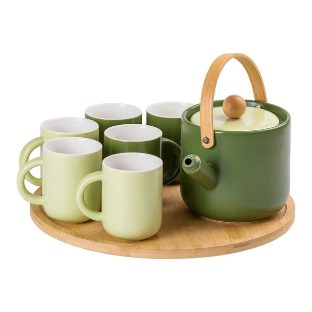 Чайний сервіз на 6 персон з бамбуковою підставкою зелений