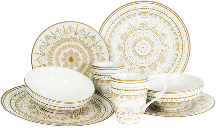 Набір столового посуду CreaTable Mandala Gold з 8 предметів на 2 персони кераміка золотисто-білий