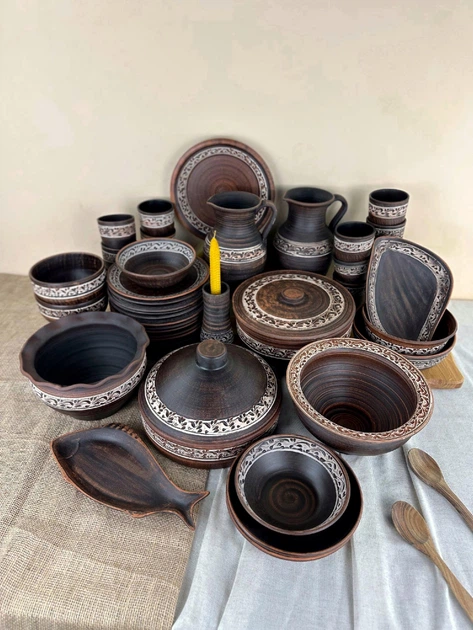 Набір глиняного (керамічного) посуду "На Різдво" на 12 осіб Гражда Ангоб