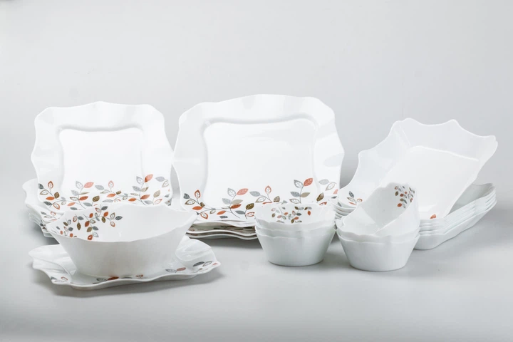 Столовий сервіз 26 квадратних керамічних тарілок Білий з квітами