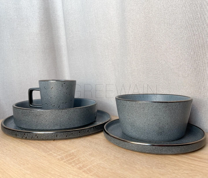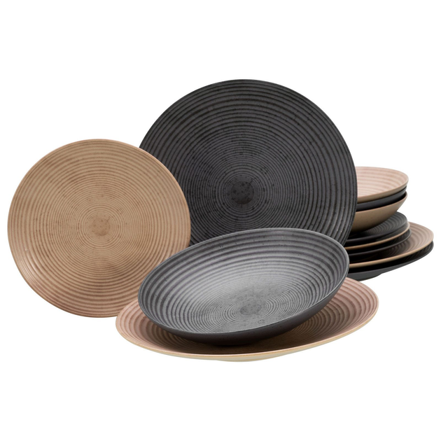 Набір столового посуду CreaTable Catania Anthracite Sand з 12 предметів на 4 персони керамограніт антрацит пісочний