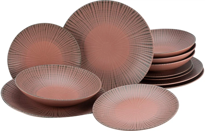 Набір столового посуду CreaTable Vesuvio Coral Red з 12 предметів на 4 персони керамограніт коралово-червоний