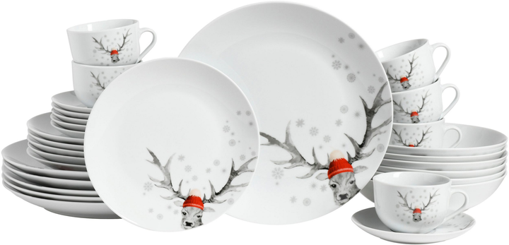 Різдвяний набір столового посуду CreaTable Luna Deer із 30 предметів на 6 персон порцеляна